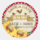 Sticker Rond Sunflower Rooster Rustic Enregistrer la date Étiqu
