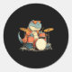 Sticker Rond Sungles Rockstar Dinosaur With Cool Drums Costume