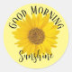 Photo de fond d'un tournesol jaune vif avec le texte "Good Morning Sunshine" sur un arrière - plan jaune clair. Si vous le souhaitez, vous pouvez remplacer le mot Sunshine par un nom ou un autre texte.