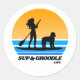 Sticker Rond SUP et Groodle - Standup Paddleboard Chien Maman