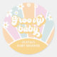 Autocollants de baby shower super Baby Retro avec marguerites de style 70 et polices boho et couleurs pastel