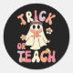 Sticker Rond Super Halloween Trick Ou Enseigner Retro Floral Fa