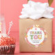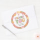 Une audacieuse fête d'anniversaire hippie puissance fleurie merci autocollant qui est parfait pour toute jeune fille. Le design super offre des marguerites multicolores qui créent une bordure. Des lettres de style amusantes des années 1970, lisant "Merci", ajoutent une ambiance colorée. Le texte personnalisé vous permet d'ajouter un message de remerciement personnel.
