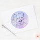 Élégant aquarelle bleue et rose calligraphie Baby Shower Autocollant Rond Classique avec le titre "La mariée est sur un nuage neuf". Thème Cloud 9 également disponible dans ma collection sur des produits assortis.