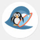 Sticker Rond Surfer de pingouin