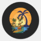 Sticker Rond Surfing Santa Toucan And Funny Skeleton Tropical C