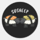 Sticker Rond Susheep Funny Sushi Sheep Pun Dark BG