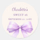 A soft ivory background color. Decorated with a large lavender colored bow. Personalize and add the name and date.