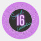 Sticker Rond Sweet 16 violet argenté brillance personnalisée