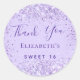 Sticker Rond Sweet 16 violet nom de parties scintillant merci