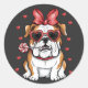 Sticker Rond Sweet Bulldog avec Lollipop Saint-Valentin.