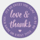 Sticker Rond Sweet Love & Thanks Lavender Purple Script simple