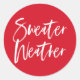 Habille tes enveloppes de vacances avec nos stickers Sweater Weather! Les autocollants de vacances mignons portent les mots "Sweater Weather" dans une police de caractères blanche et manuscrite contre un arrière - plan rouge.