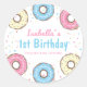 C'est un autocollant rond classique "Sweet One" de la fête d'anniversaire de Donut Merci. Il a des arrosages de couleurs pastel et des beignets mignons et sucrés. Parfait pour les petites filles fête d'anniversaire. Il a un texte de script de typographie amusant et tout le texte ici est facilement personnalisable. Meilleur ajustement pour les enfants à thème Donut 1er anniversaire.