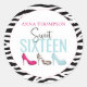 Sticker Rond Sweet sixteen Anniversaire Fille Rose Whimsical Ch