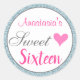 Sticker Rond Sweet sixteen de Parties scintillant bleu clair ro