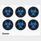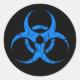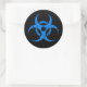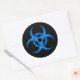 Sticker Rond Symbole bleu rayé de Biohazard sur le noir