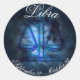 Astrologie Signe Libra Horoscope Échelle Symbole Sticker symbole zodiaque avec arrière - plan bleu et noir.