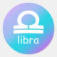 Un ensemble d'autocollants ronds avec le symbole astrologique de Libra sur un arrière - plan à dégradé bleu et violet. Pour quelqu'un dont l'anniversaire se situe entre le 23 septembre et le 22 octobre.