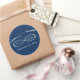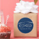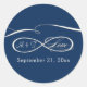 "Symbole Infinity Signet Script Love Navy Blue Mariage Classic Round Sticker." Élégante typographie de script avec un symbole infinity et vos initiales et la date du mariage. Bleu et blanc marine. Graphiquement conçu par Audrey Jeanne Roberts, artiste et designer de renommée internationale, copyright.