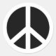 Un symbole de paix noir et blanc sur les autocollants ronds.