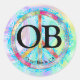 Cet autocollant OB Ocean Beach, Californie, est orné d'un panneau de paix coloré avec un éclat d'eau et un arrière - plan tourbillonnant coloré.