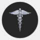 Sticker Rond Symbole Médicale Caduceus sur le noir