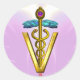 Sticker Rond SYMBOLE VÉTÉRINAIRE D'OR CADUCE Rose Blanc
