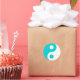 Symbole du Yin yang bleu turquoise foncé et blanc.