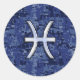 Sticker Rond Symbole Zodiaque Pisces sur Camo numérique bleu ma
