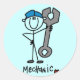 Un mécanicien à figurine porte un casquette bleu et tient une grande broche sur des T-shirts mécaniques, des tasses, des cartes, des autocollants, des sacs et d'autres articles parfaits comme cadeaux pour la mécanique !