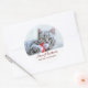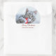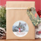 stickers de Noël conçus avec une jolie photo de Noël d'un chat tabby gris mordant joyeusement un chapeau santa rouge. Ses gros pattes moelleuses rendent cette photo très agréable.