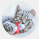 Sticker Rond Tabby gris mou Chat avec Noël Casquette