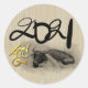 Laver le style d'un bison d'eau nageant, peinture originale de RB sur papier texturé vietnamien (image imprimée) + grand noir "2021", doré "Année du x". Conception sur autocollant rond. Carte de voeux, carte postale des jours fériés, invitations, artisanat, fournitures de fête (bientôt). Parfait pour le Nouvel An chinois et vietnamien de l'Ox 2021 ou anniversaire (personnes nées dans l'Ox Year).