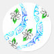 Fleurs de Tiaré avec motifs polynésiens "marquisiens". Ils symbolisent l'océan, la terre, le ciel, la puissance, la vision et les ancêtres.
