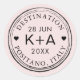 Personnalisez cette étiquette de design de tampon de passeport ou de courrier aérien rétro ou le sceau d'enveloppe avec des noms, une date de mariage et une destination pour un thème voyage ! Les couleurs de fond et de texte peuvent être modifiées pour correspondre à vos invitations et à votre décoration.
