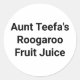 Tante Teefa's Roogaroo Fruit Juice Comic Fake-Business-Publicité Splash-Art autocollant-design par Jeff Hankamer à Artjunkhaus
