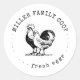 Améliorez votre ferme familiale ou familiale avec ce bel autocollant vintage en carton d'oeufs avec un script rustique et une illustration de poulet et de coq. Customisez avec votre propre nom de famille et assurez-vous de consulter notre magasin pour plus d'articles de cette collection et choisissez entre différentes couleurs qui répondent à vos besoins.
