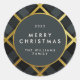 Sticker Rond Tartan à carreaux dorés et vert foncé Joyeux Noël
