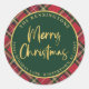 Sticker Rond Tartan Plaid Gold Script Christmas Adresse de reto