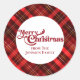 Sticker Rond Tartan rouge traditionnel Joyeux Noël fête