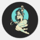 Sticker Rond Tatoué Goth Pin-up Girl Horror Ghost Moon Rockab