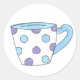 Les autocollants présentent une illustration originale d'une tasse à points polka bleu et violet.
