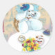 Sticker Rond Tea Party de caniche blanc avec petits gâteaux
