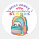 Make the first day of school extra special with this adorable sloth-themed backpack sticker designed for teachers to gift to students. Featuring a cute sloth backpack illustration and the message “{teacher name} wishes you a great first day of school”, this design can be fully personalised to include the teacher’s name for a warm and welcoming start to the new school year.