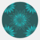 Sticker Rond Teal Leaf Mandala Design on Dark Cyan