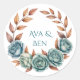 Sticker Rond Teal Roses and Copper Leaves Wedding