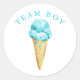Votez équipe rose ou équipe bleu à une soirée révélateur de genre avec cet autocollant! Illustration d'une crème glacée bleue en bleu peinte avec aquarelle. Le texte dit "garçon d'équipe".