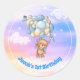 Un joli ours en peluche en texte personnalisé tenant des ballons bleus tout en flottant à travers des autocollants de ciel étoilé pour vos enveloppes d'invitation, cadeaux et sacs de faveur pour aider à célébrer le premier anniversaire de votre bébé garçon.