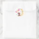 Sticker Rond Teddy Bear assis sur la Lune | Baby Girl Shower